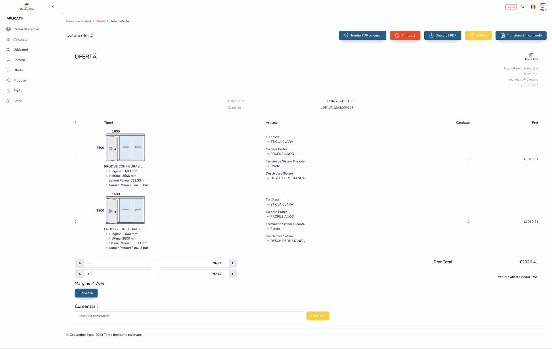 Utilizatorii pot recalcula și ajusta ofertele înainte de a le trimite clienților finali.